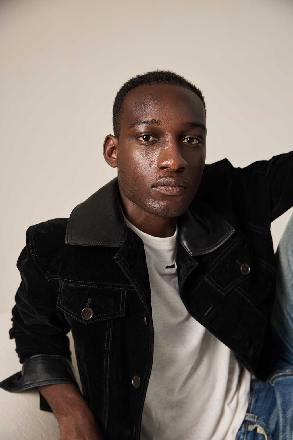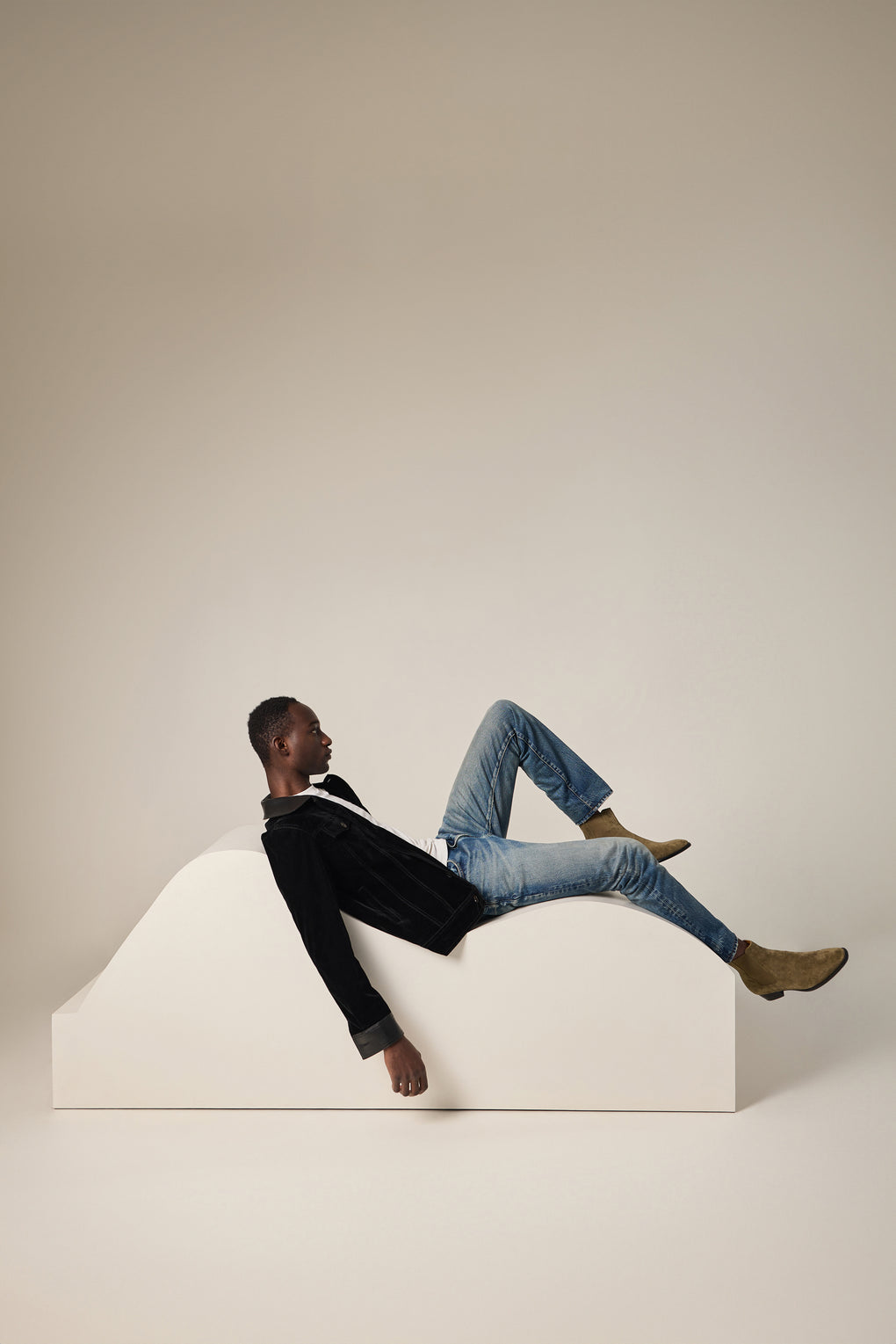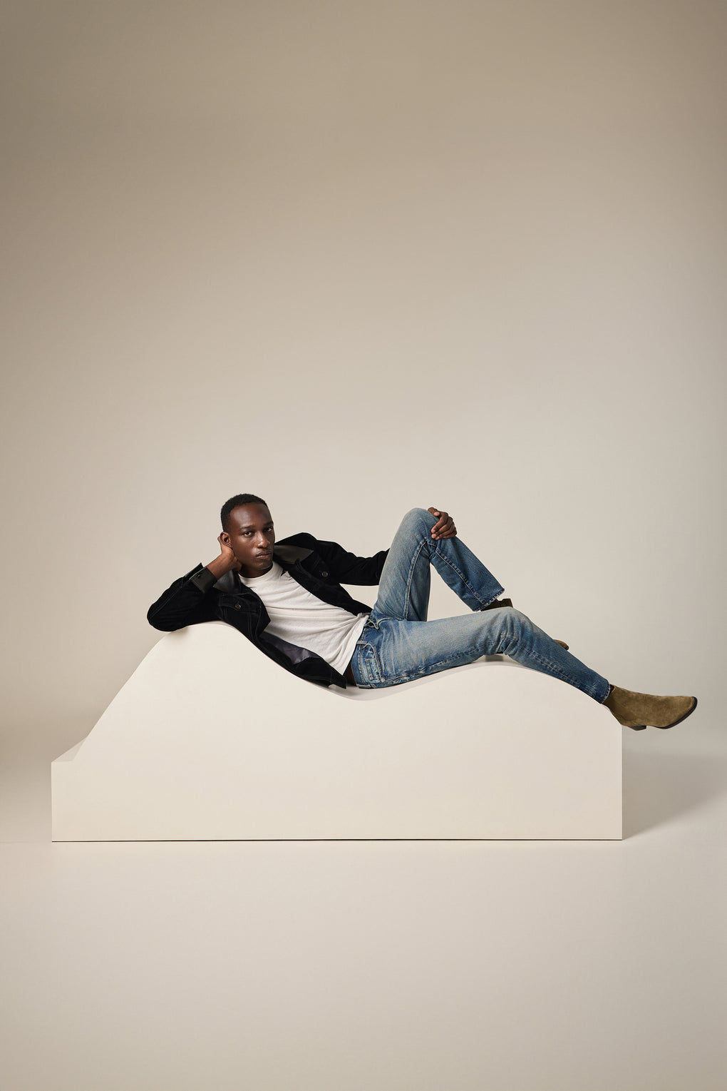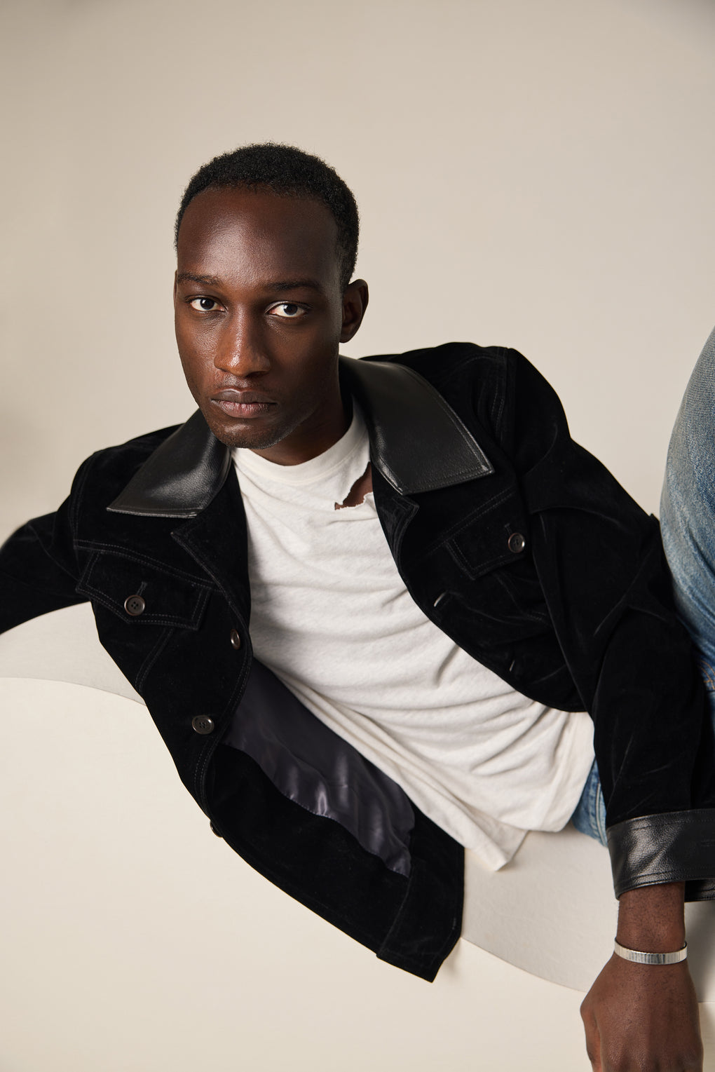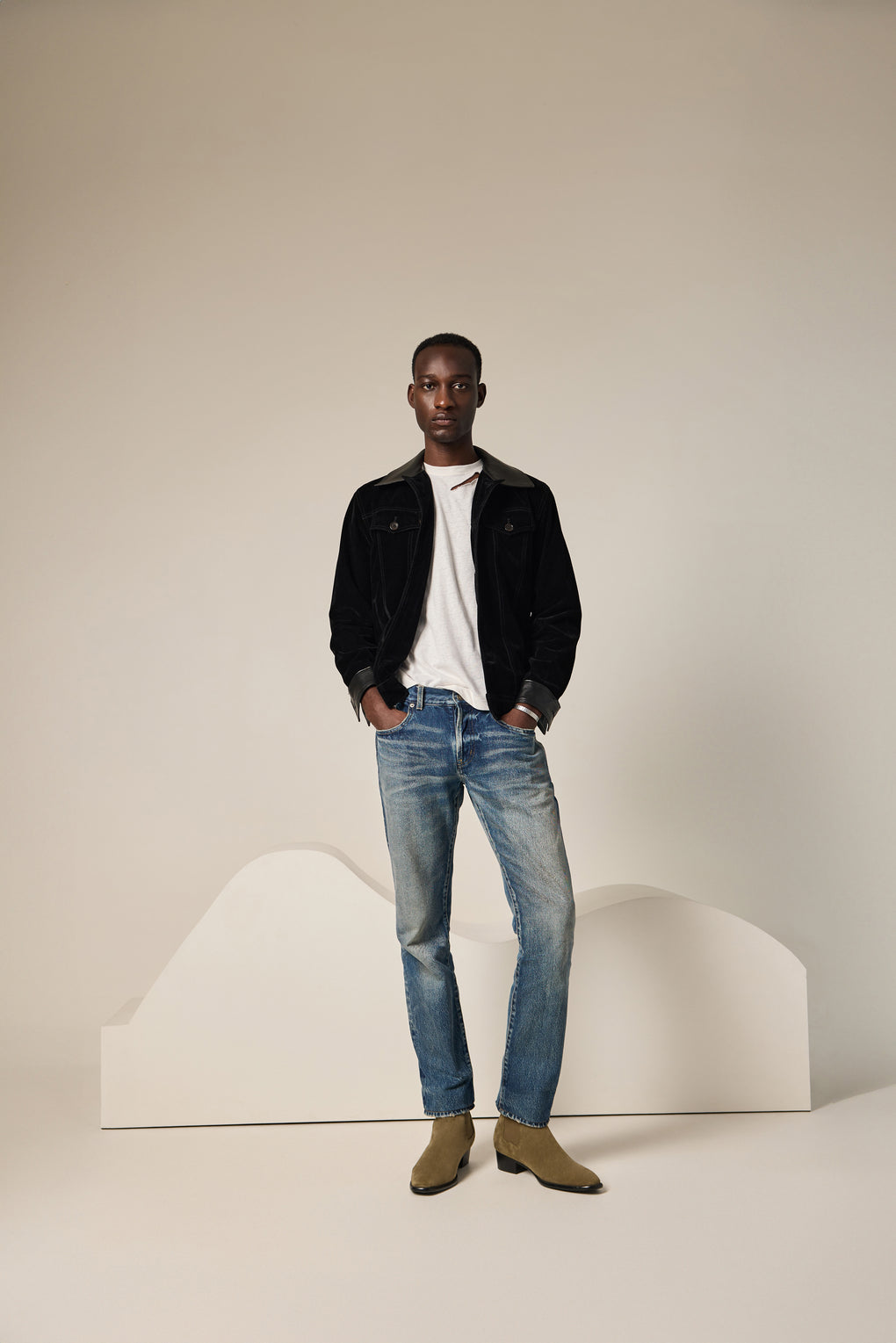 perlo studios' black velvet trucker jacket is detailed with a leather collar & cuff and finished with mop buttons. one size fits all full sleeve regular fit unisex color : black |