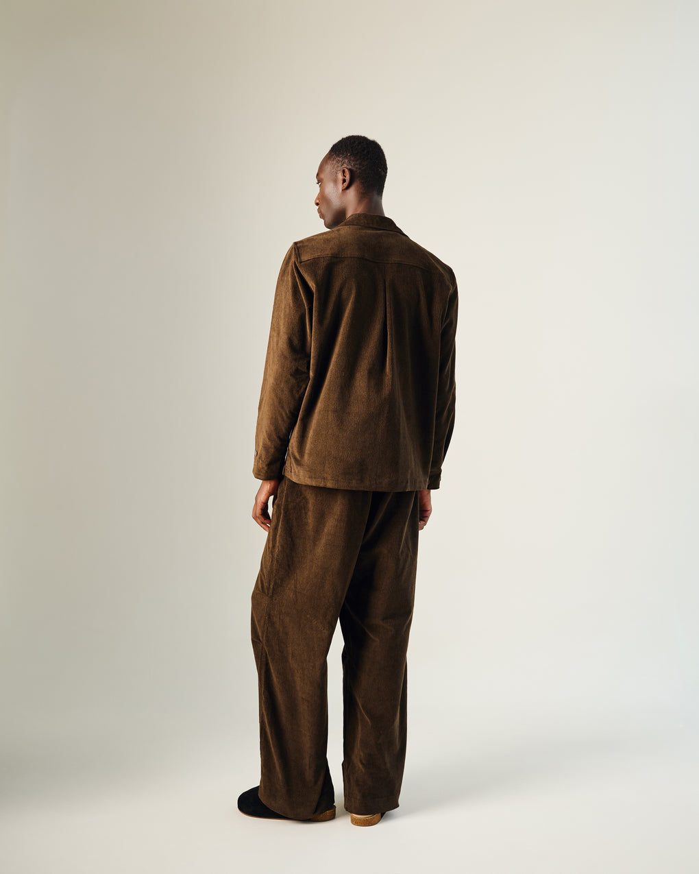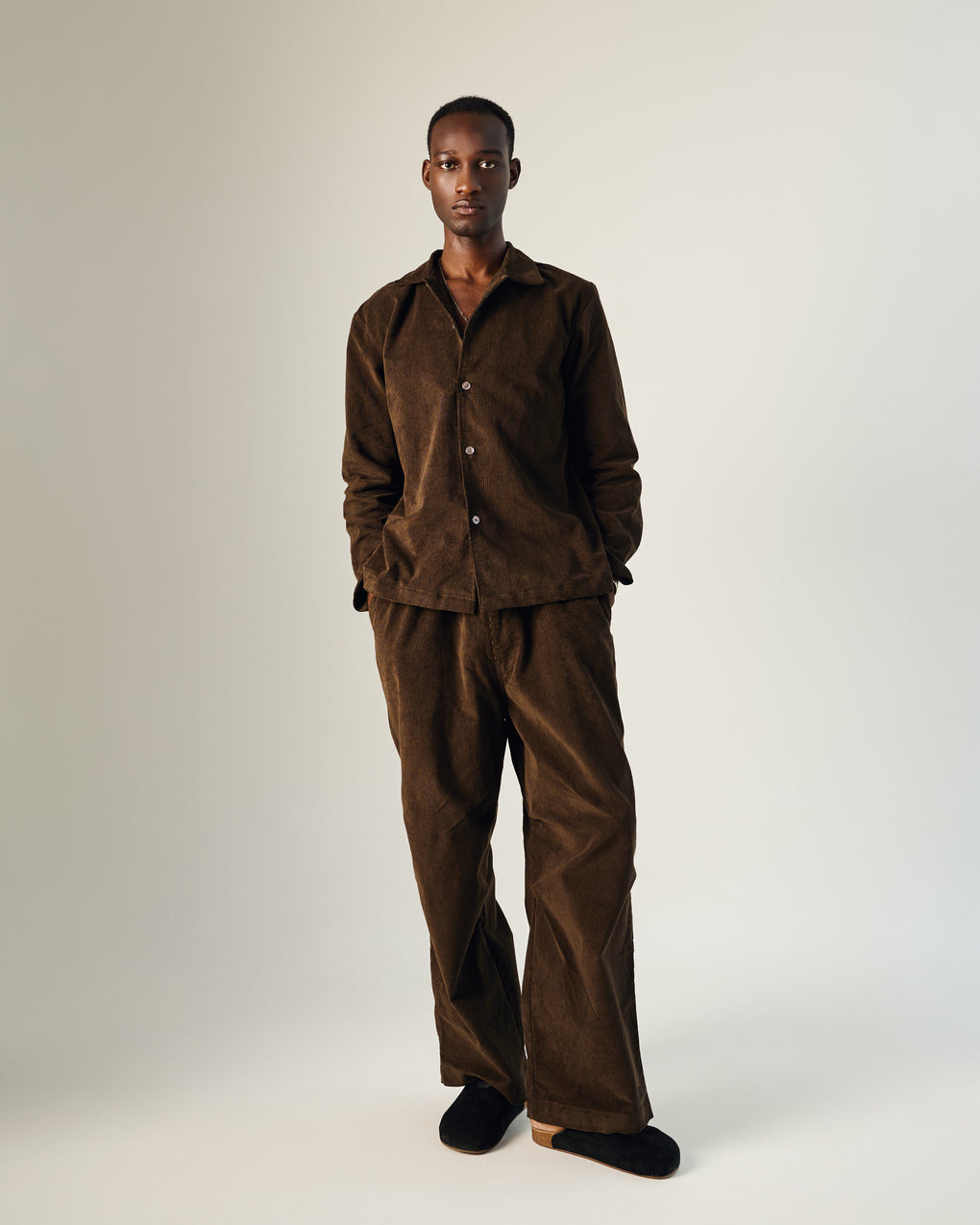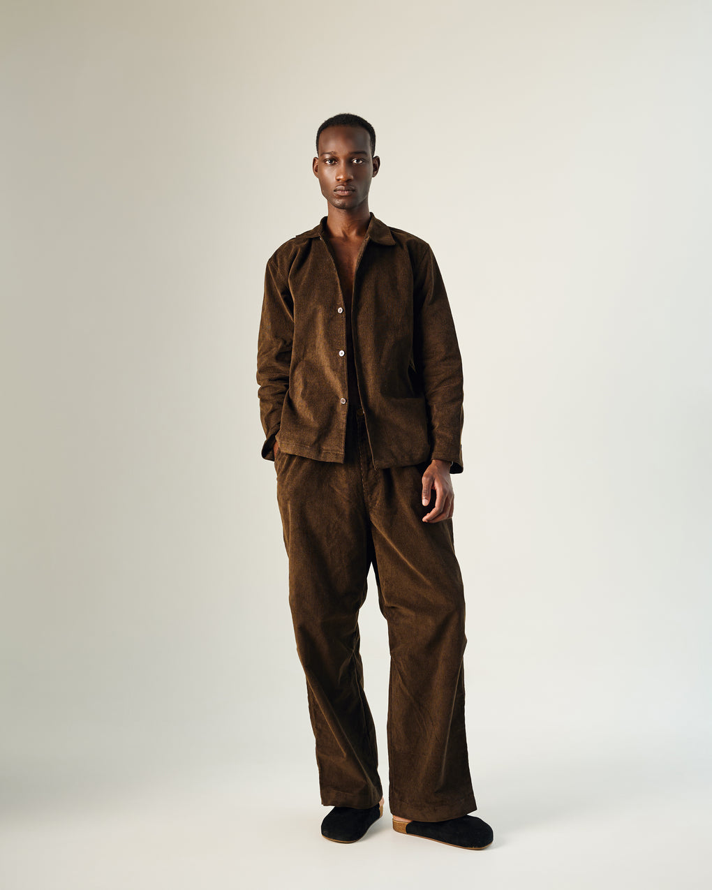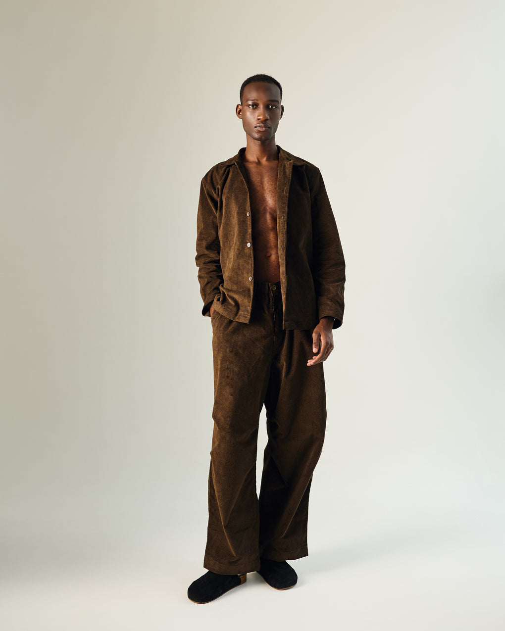 perlo studios' brown corduroy pants are finished drawstrings for comfort. one size fits all oversized fit unisex color : brown |