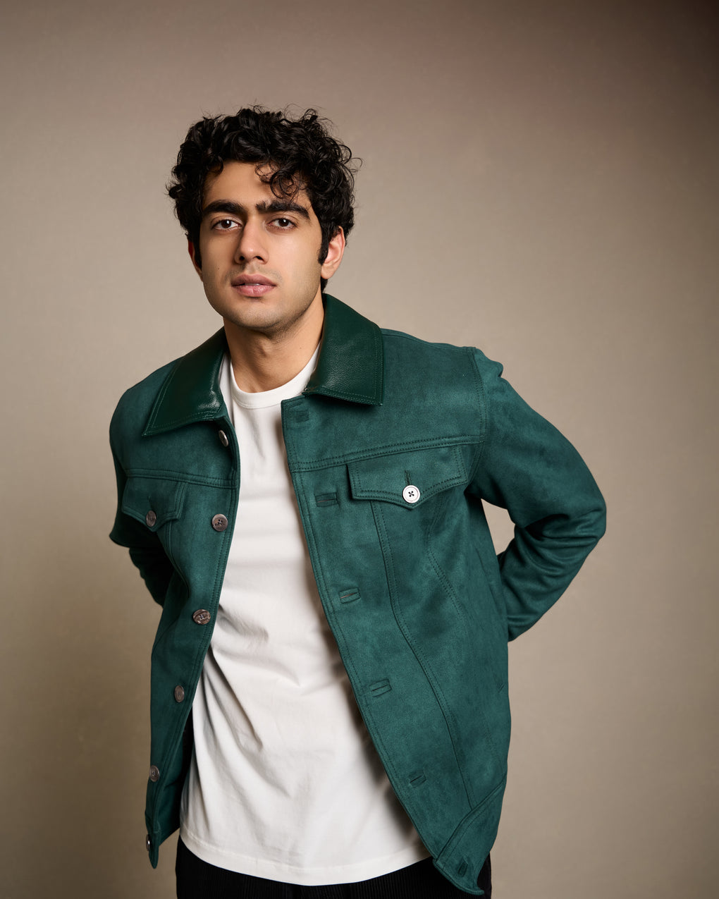 Green Suede Trucker Jacket